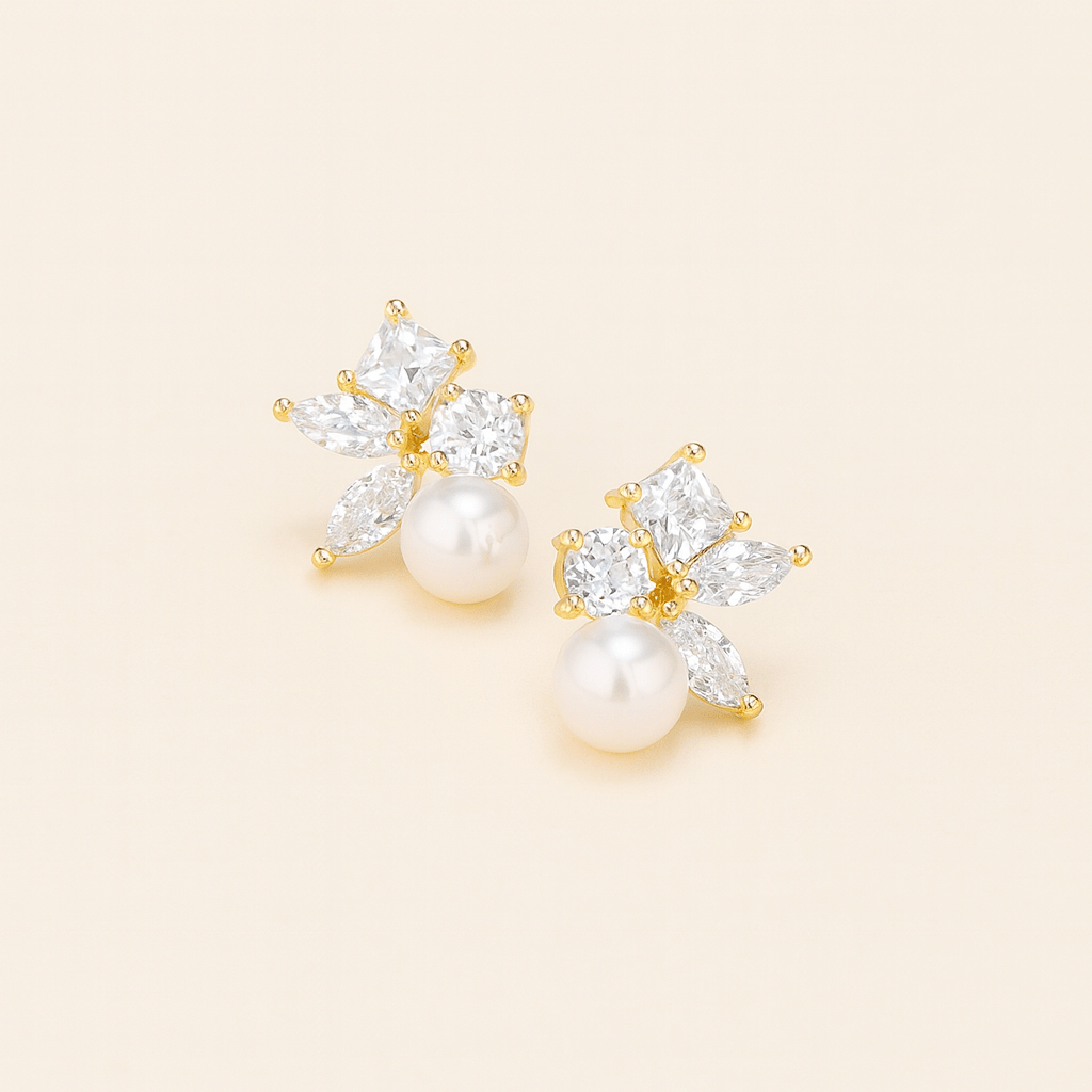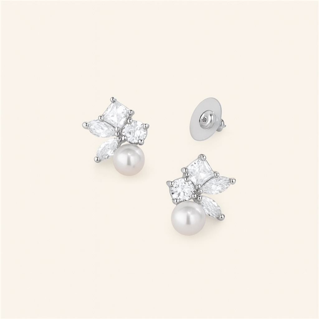 Ohrstecker mit Perlen und Zirkonia Details in Gold oder Silber