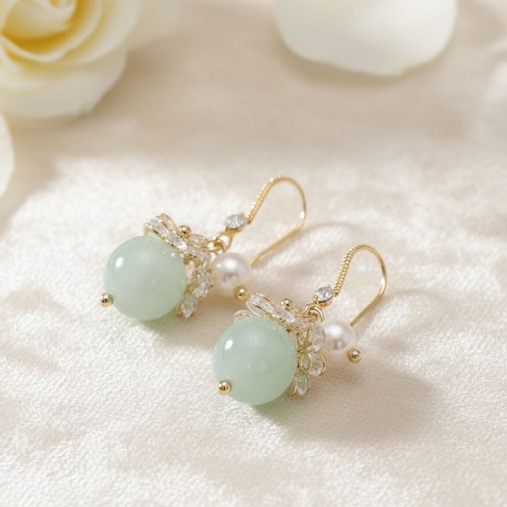 Ohrhänger mit natürlicher Perle oder Jadestein