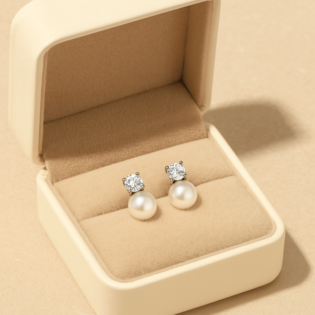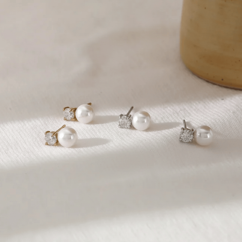 Ohrringe Perlen und Zirkonia in Silber und Gold
