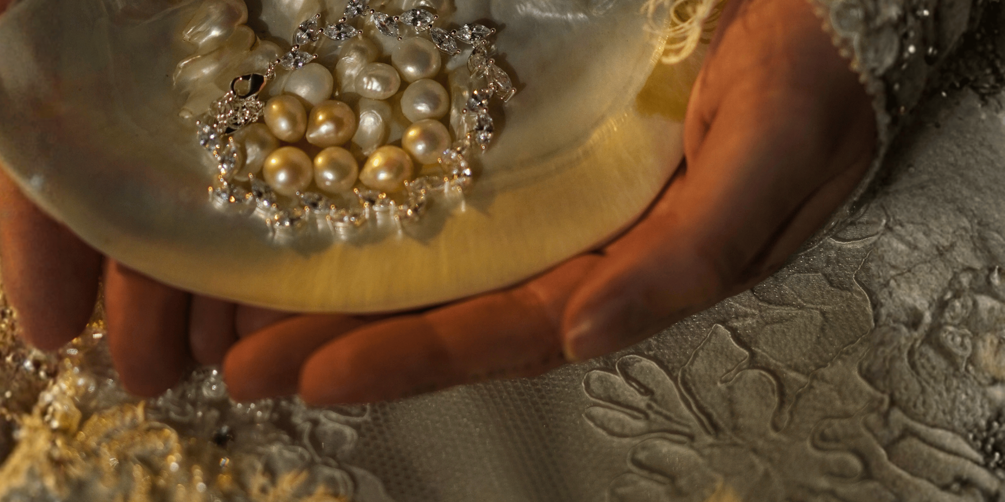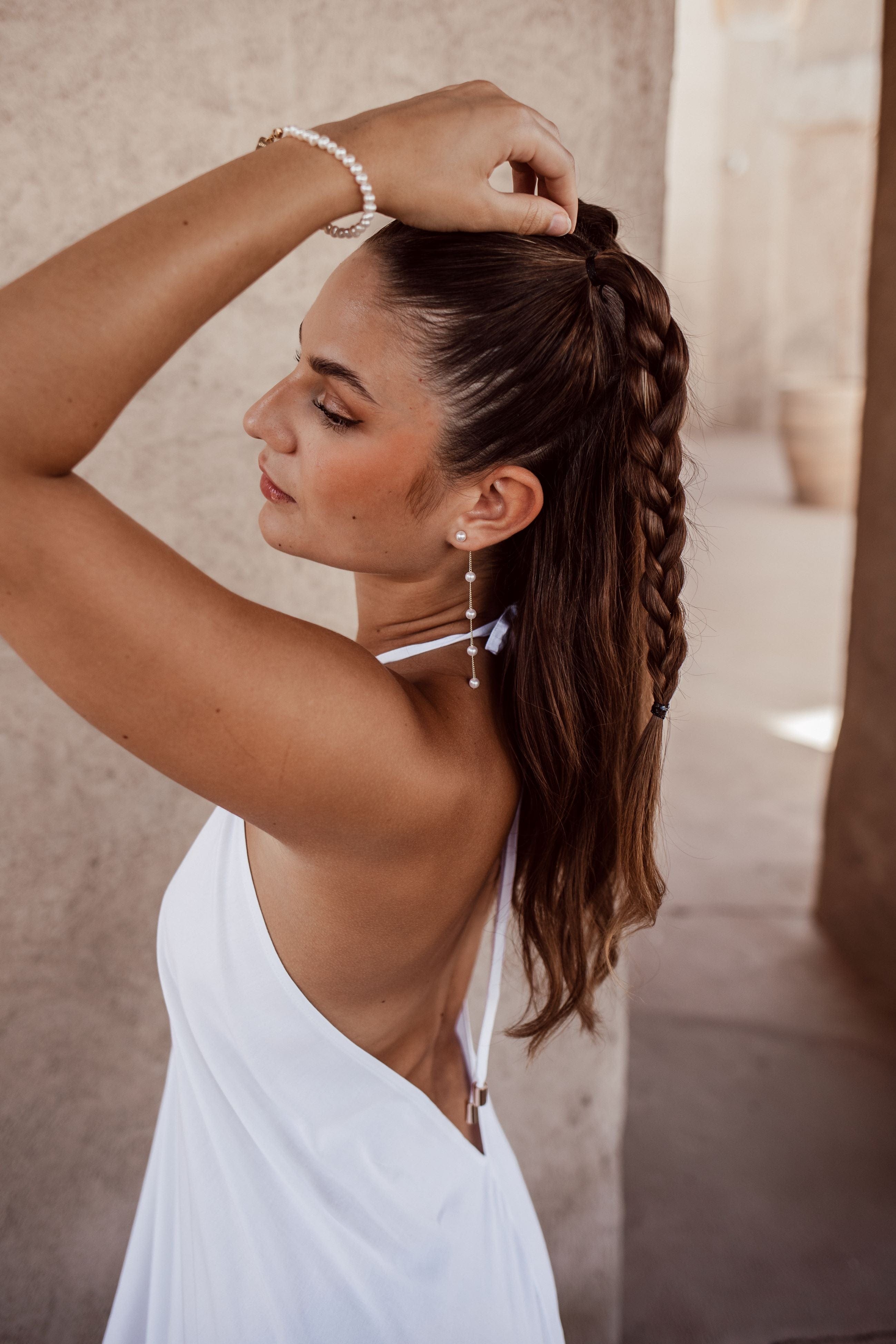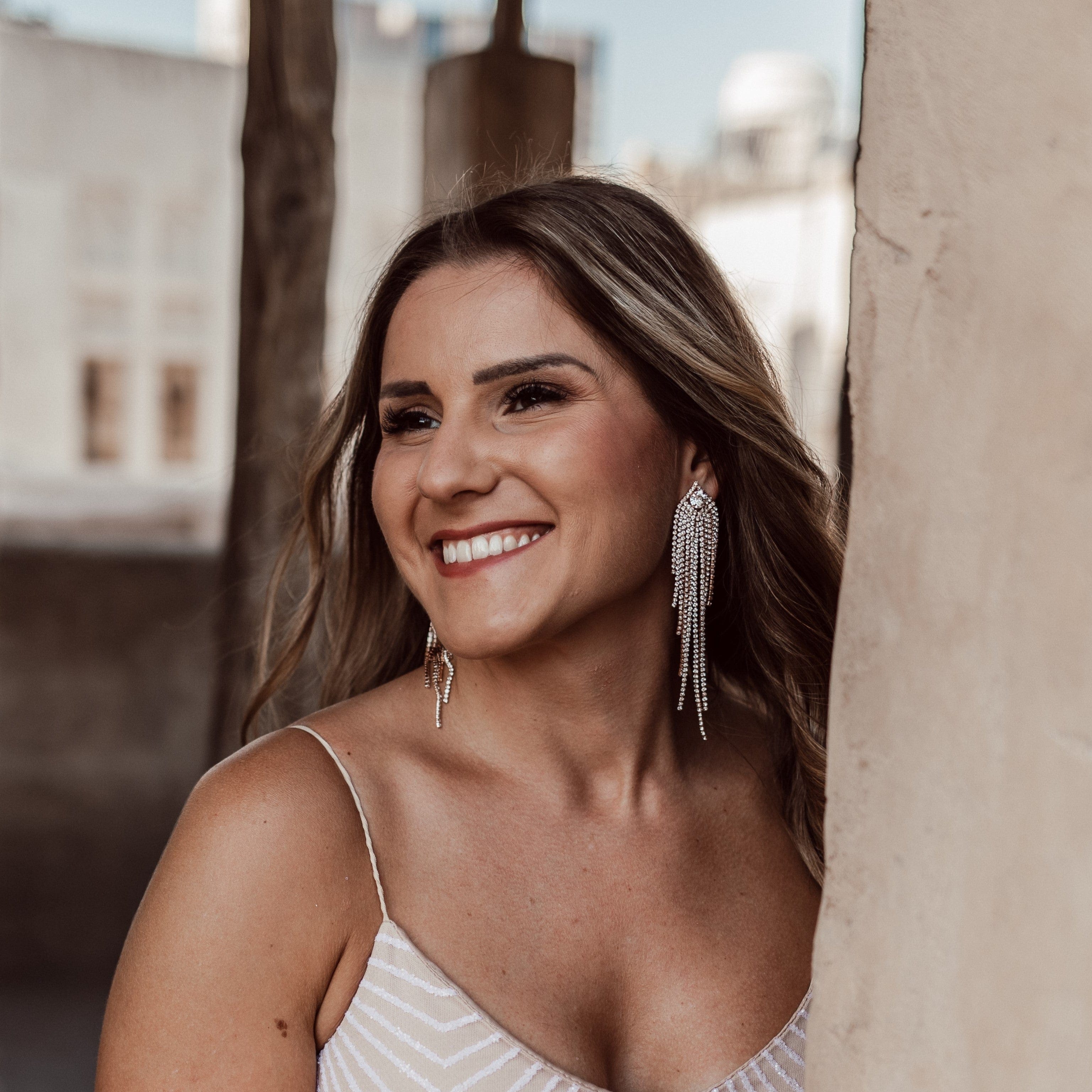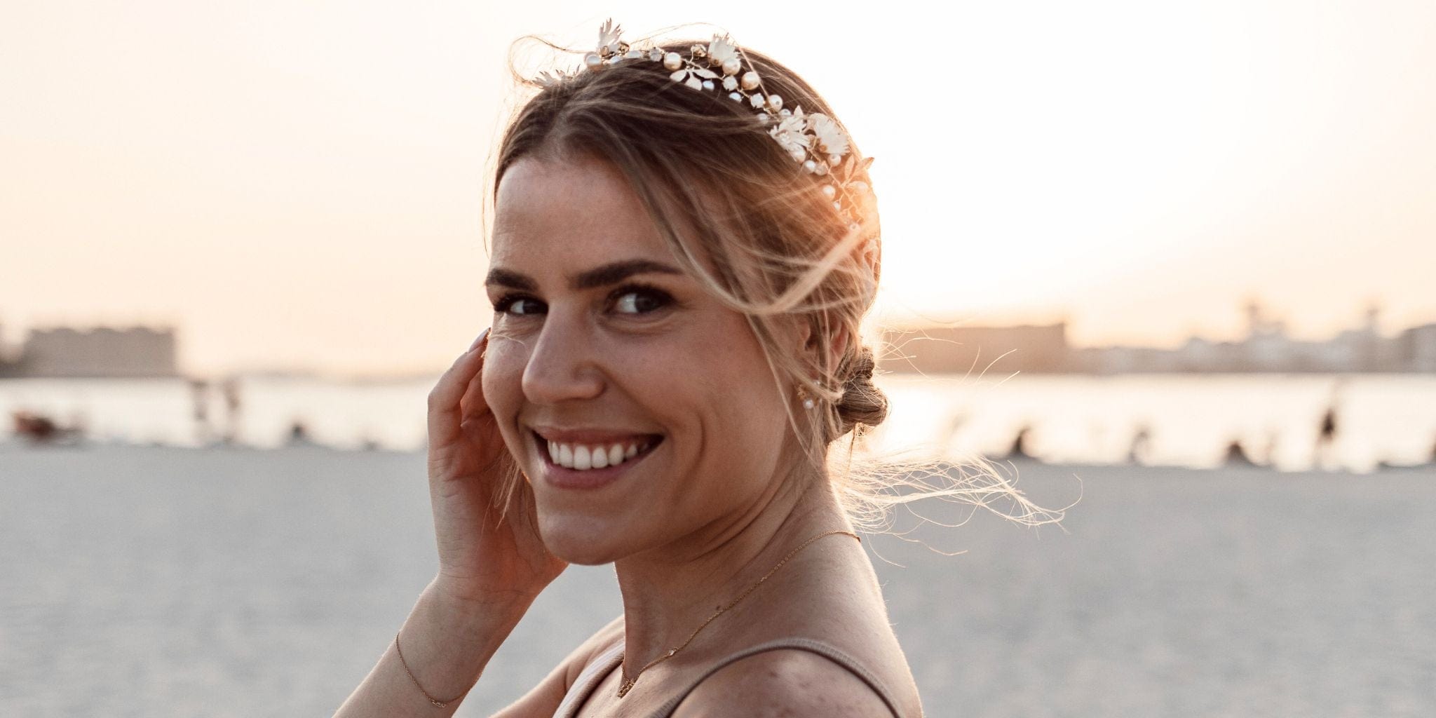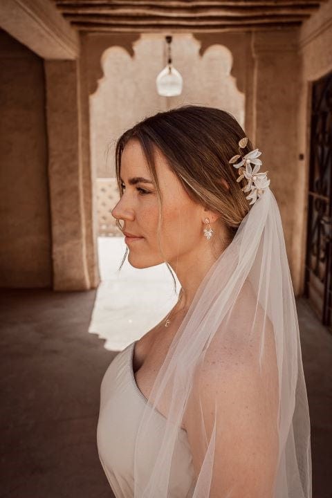 Lass dich inspirieren von unseren aufwändig gearbeiteten Pieces wie Ohrringen oder Haarschmuck, fotografiert im sonnenverwöhnten Dubai.