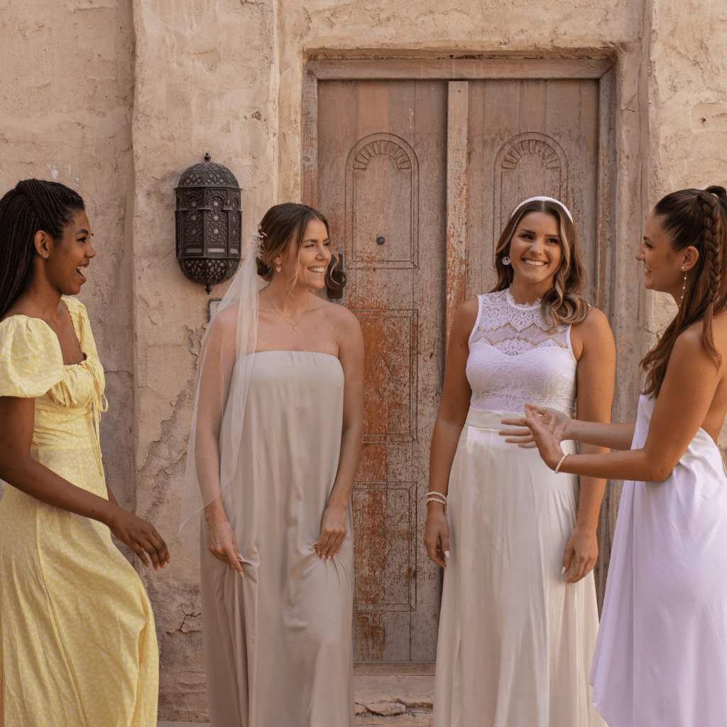 Brautmutter, Brautjungfern und Hochzeitsgäste
