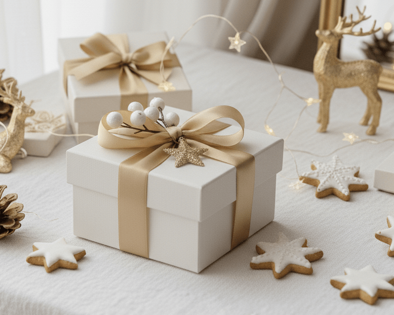 Wir machen das Schenken noch schöner: Jedes Schmuckstück wird liebevoll in einer festlichen Verpackung geliefert – inklusive hochwertiger Weihnachtskarte mit Umschlag.