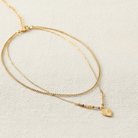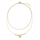Eine Kette im Layer-Design aus vergoldetem Edelstahl mit kleinem Herzanhänger und kleinen bunten Perlen. Die Länge beträgt 38cm und ist verlängerbar auf 43cm. Beide Ketten sind auch einzeln tragbar.
