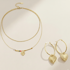 Verspieltes Schmuckset bestehend aus einer Layer-Kette und Ohrringen aus vergoldetem Edelstahl, jeweils mit passendem Herz-Anhänger.